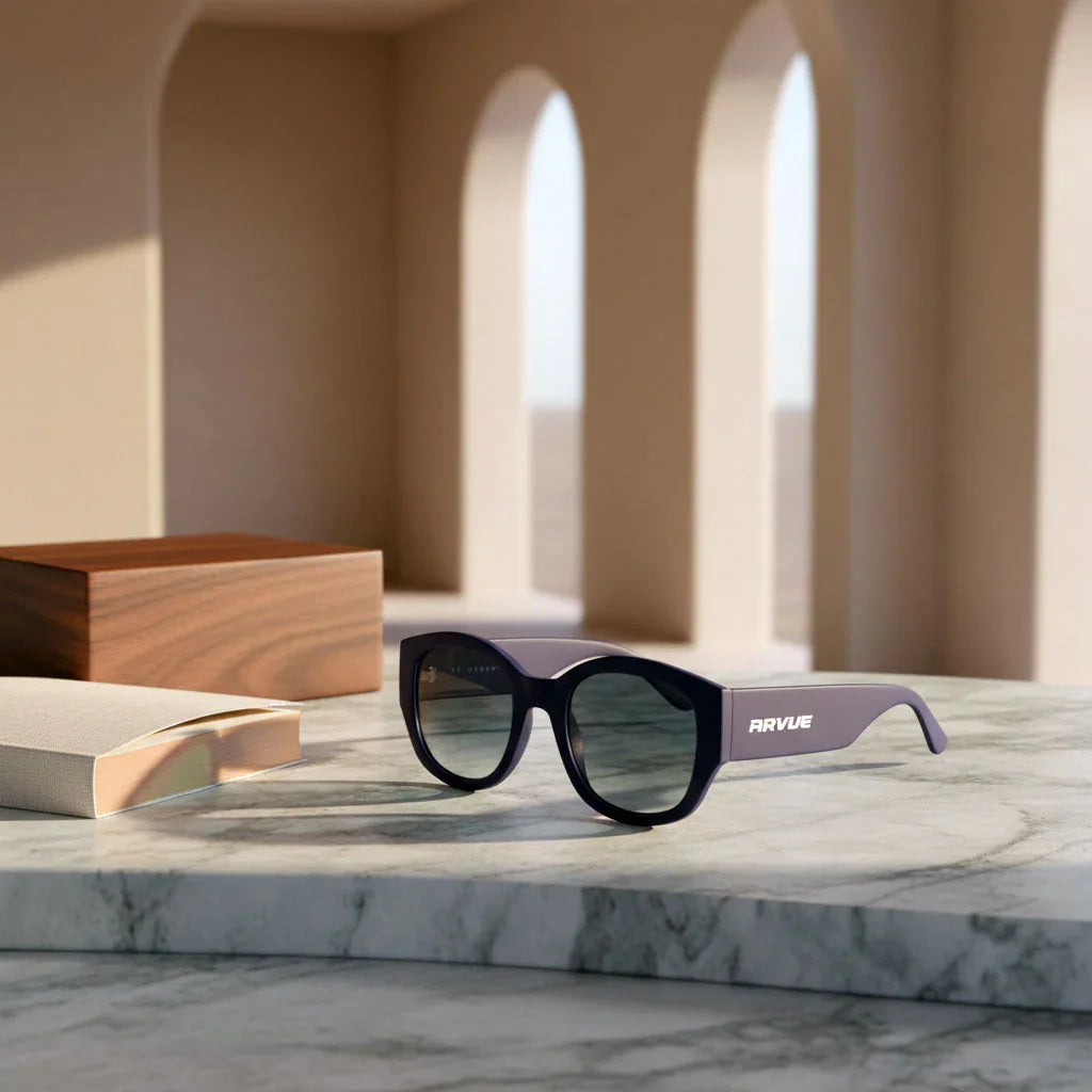 Blue Reverie is for the daydreamers with depth — calm on the surface, complex underneath. The soft navy frame and misty gradient lenses invite you to see the world your way: gently filtered, beautifully still, and always a little mysterious.