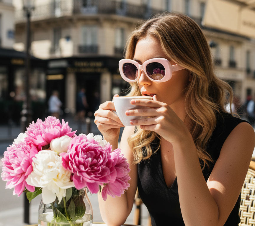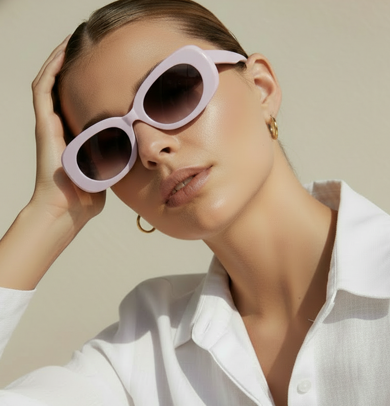 Daydream Diva is for the ones who live in their own soft-focus universe — where every glance is a mood and every moment feels like a scene. With its dreamy pink frame and rose-tinted lenses, this pair is made for girls who float through life with confidence, charm, and just the right amount of drama.