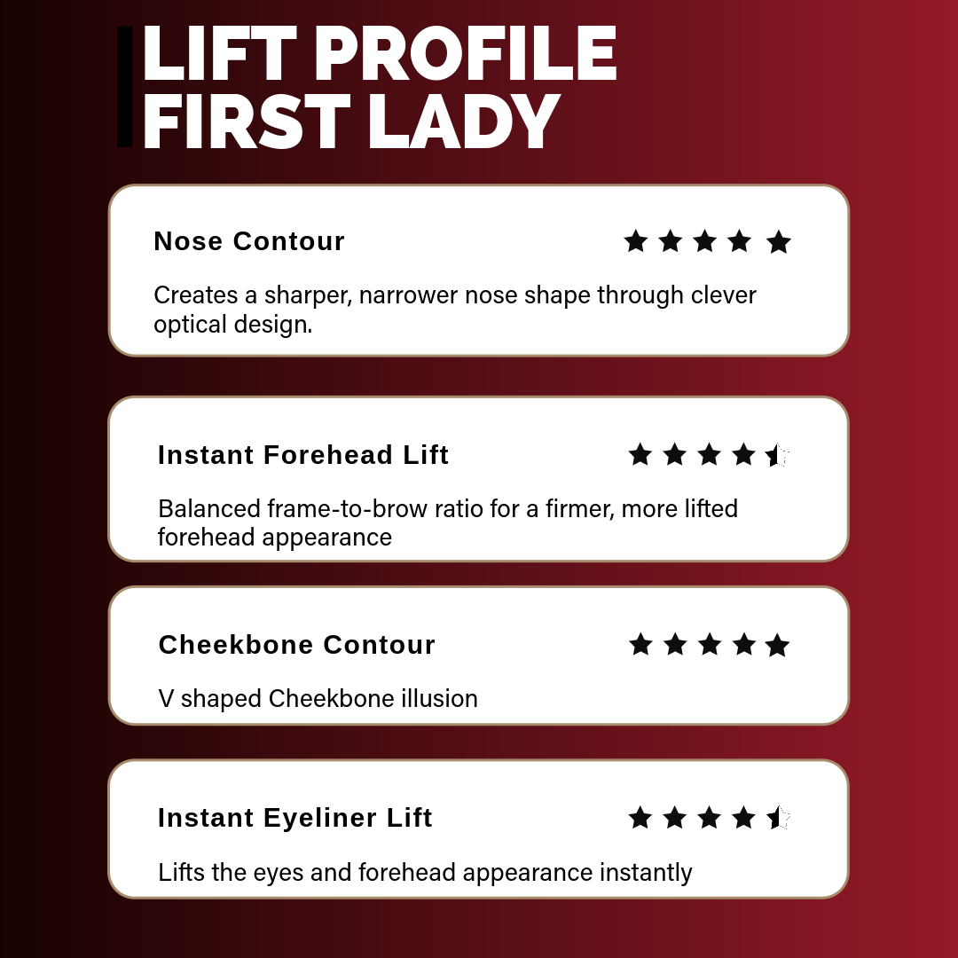 Instant Forehead Lift - Balanced frame-to-brow ratio for a firmer, more lifted appearance.