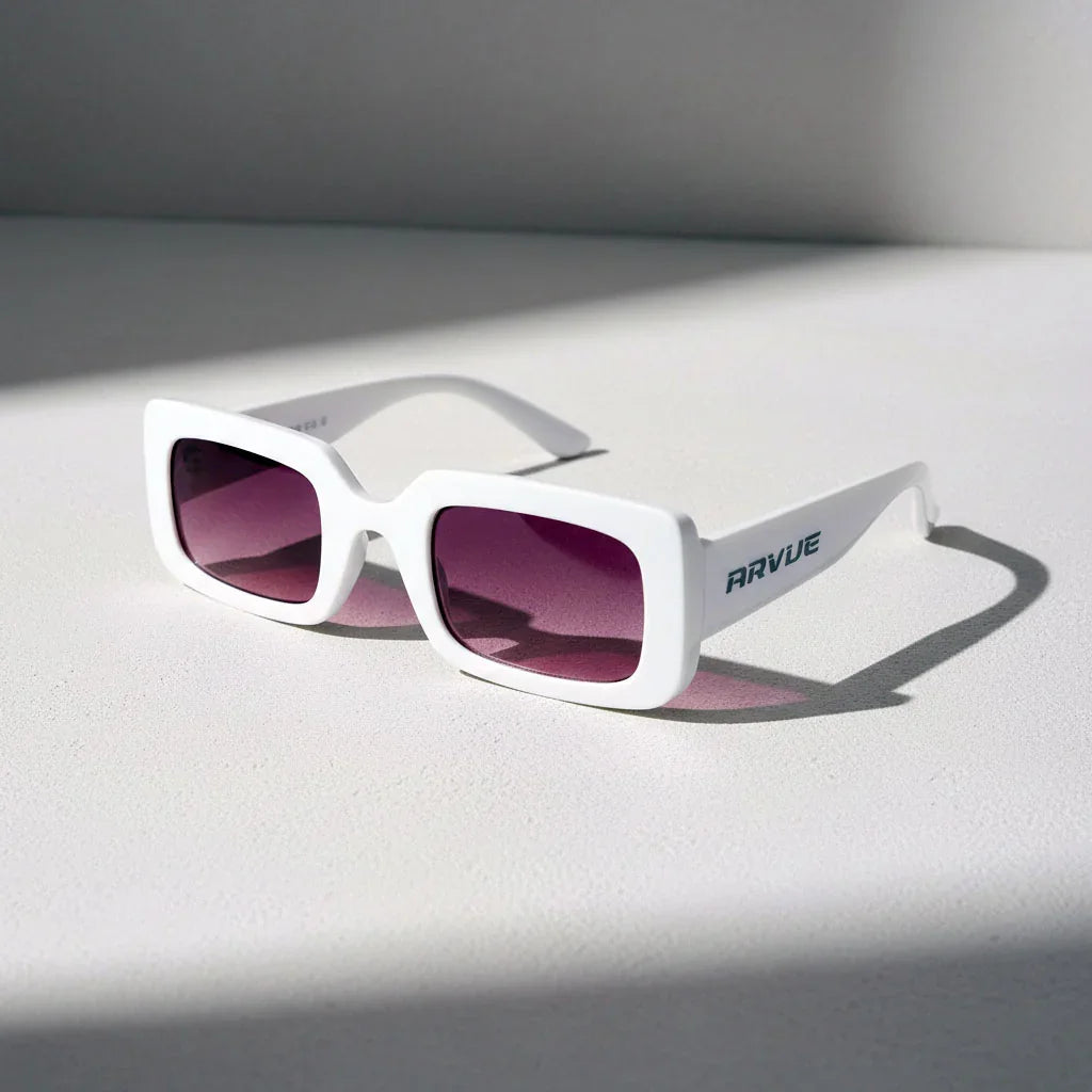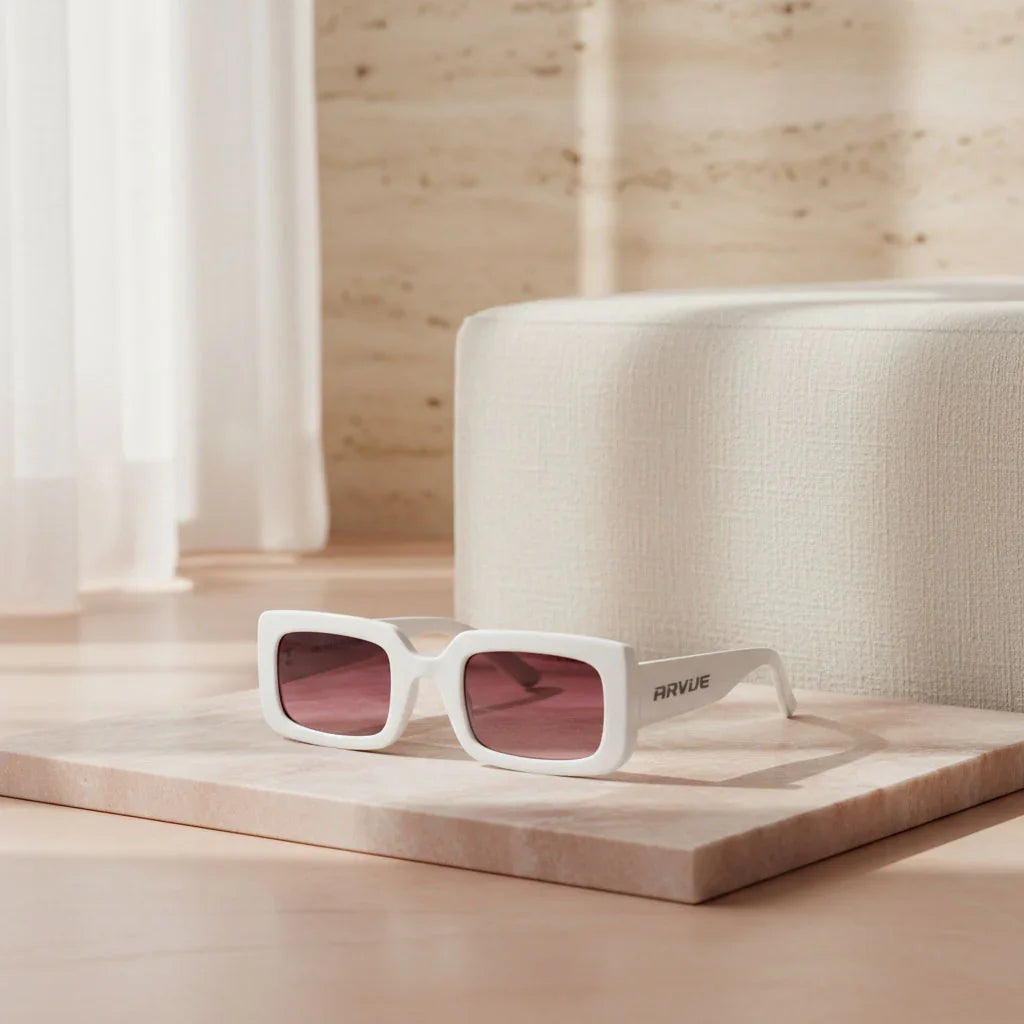 This is for the girl who’s soft-spoken but sharp-witted, sweet with a side of savage. With a creamy white frame and rosy gradient lenses, she’s all about quiet glam, smooth comebacks, and showing up like the main character — without ever needing to try too hard.