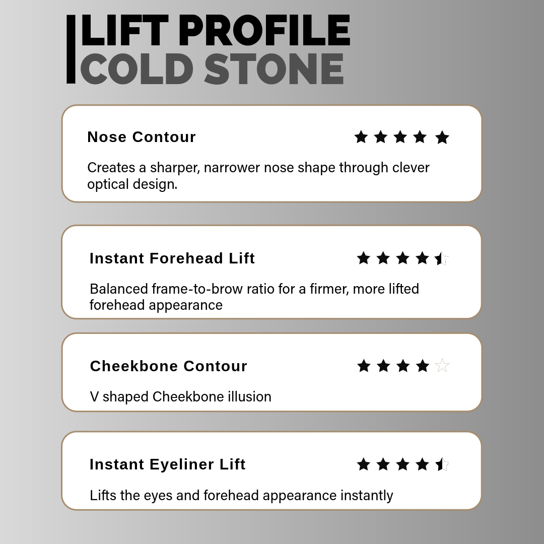 Instant Forehead Lift - Balanced frame-to-brow ratio for a firmer, more lifted appearance.