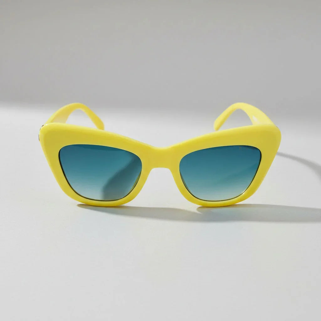 This is for the girl who mixes sunshine with just the right amount of sass. With its fresh lemon frame and cool gradient lenses, this pair is all about brunch plans, bold moves, and living every day like it’s a rooftop party.